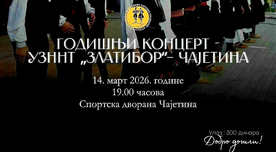 Događaj će se održati u subotu, 14. marta 2026. godine, sa početkom u 19.00 časova u Sportskoj dvorani u Čajetini.